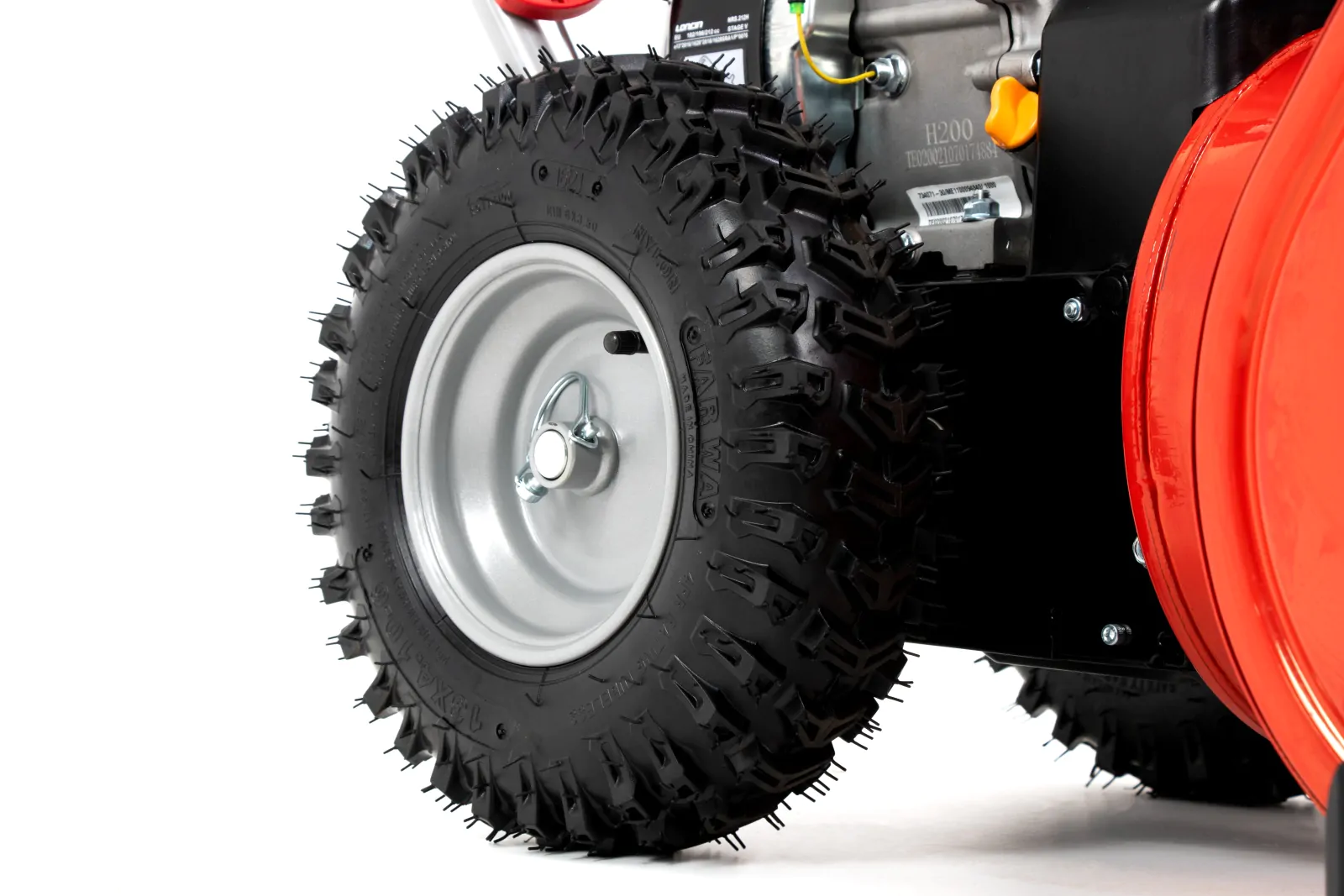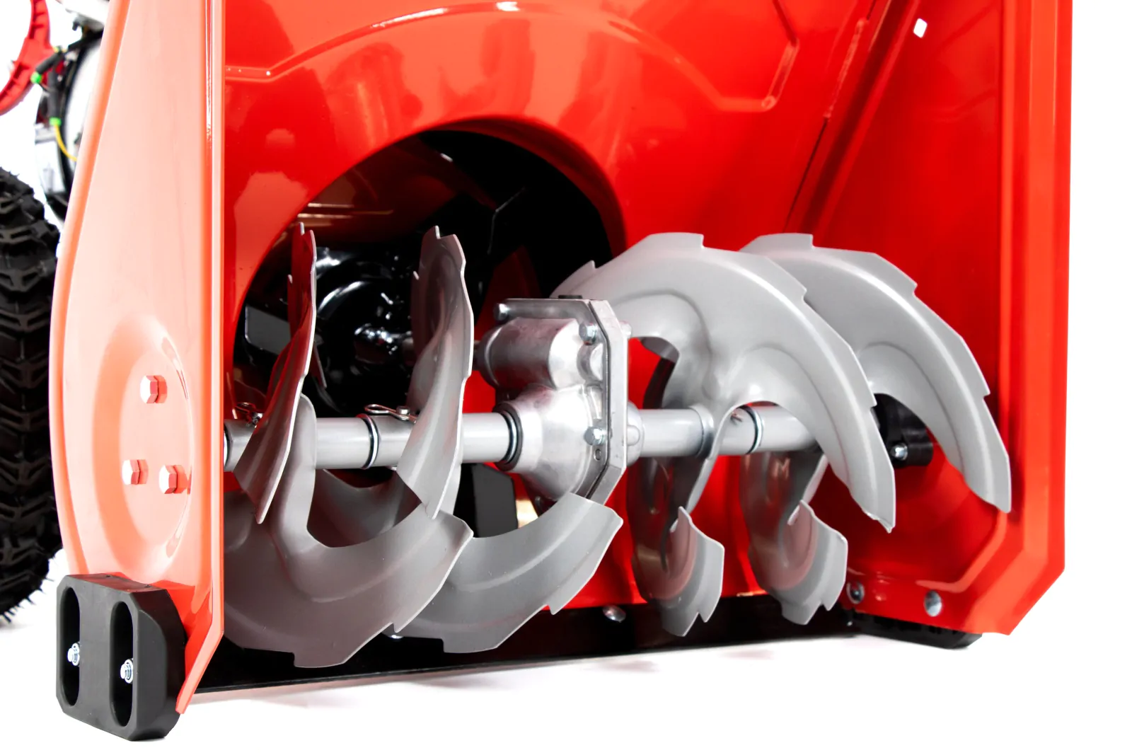 Wytrzymały stalowy ślimak zbiera śnieg, a następnie wyrzutnik odrzuca go daleko od odśnieżanej powierzchni. Ten system gwarantuje efektywność w każdych warunkach pogodowych.
