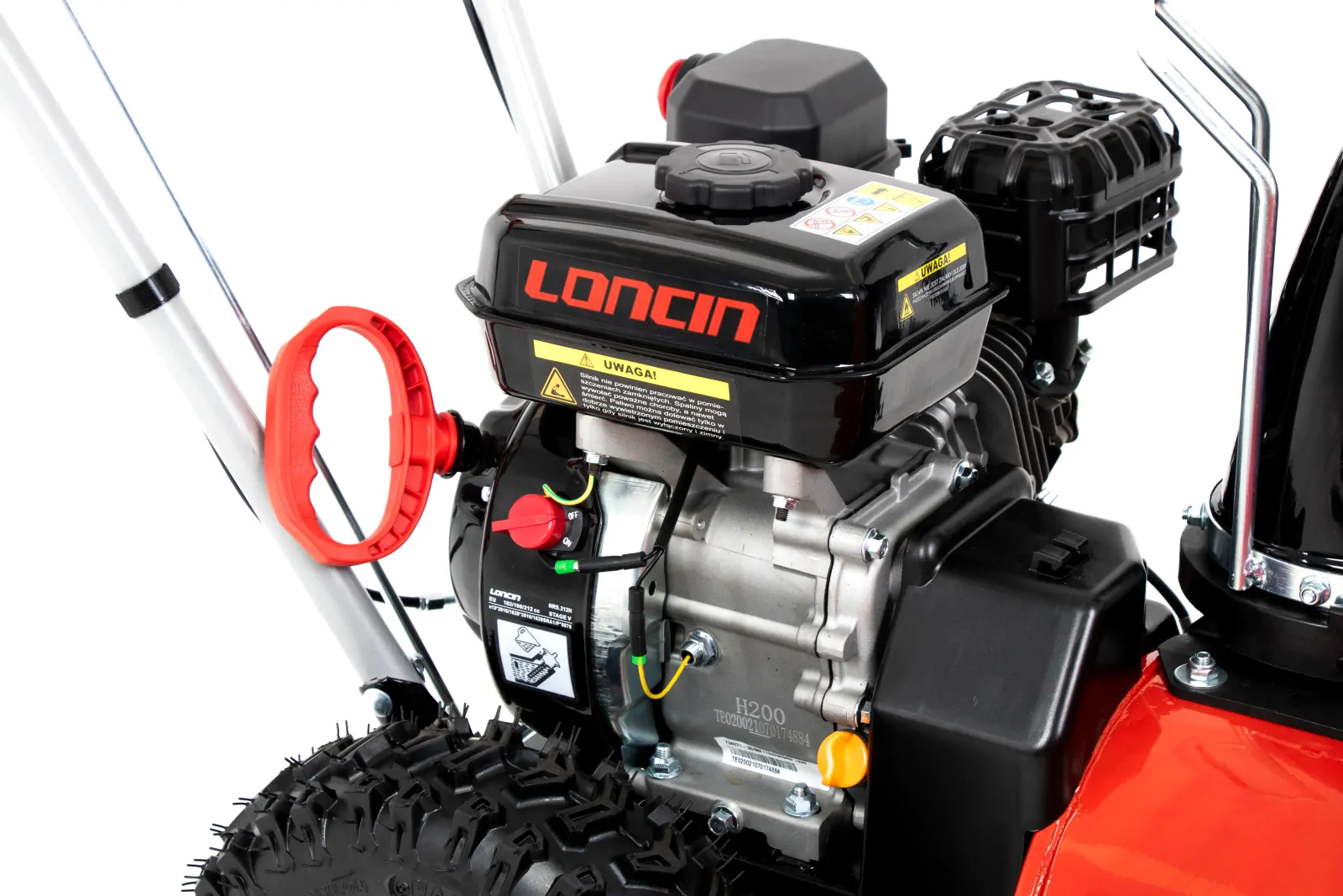 Dzięki regulowanemu kominowi wyrzutowemu możesz precyzyjnie ustawić kierunek, w którym wyrzucany jest śnieg, co zwiększa komfort i bezpieczeństwo pracy.